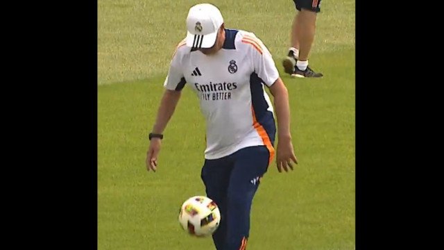 Carlo Ancelotti mais uma vez surpreendeu a todos! Em um vídeo divulgado nas redes sociais, o experiente treinador do Real Madrid demonstrou uma habilidade técnica impressionante, realizando um número de toques na bola superior à sua idade. Aos 65 anos, Ancelotti provou que a paixão pelo futebol continua acesa e que sua coordenação motora é invejável.