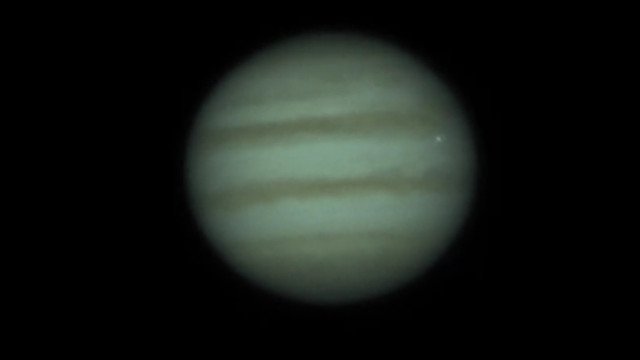 No vídeo, é possível ver uma luz brilhante no lado direito do planeta. Essa luz é o momento em que o cometa explode e se desintegra na atmosfera de Júpiter.