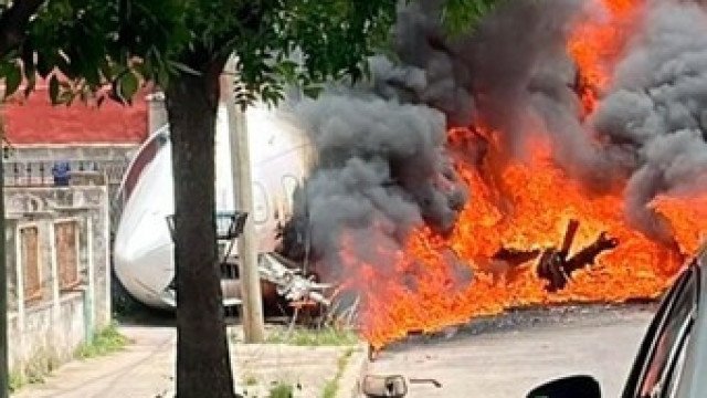 Um avião privado, pertencente ao presidente do clube argentino River Plate, caiu durante o pouso no aeroporto San Fernando, na Argentina, nesta quarta-feira, e pegou fogo após colidir com uma casa. O piloto e o copiloto morreram no acidente.