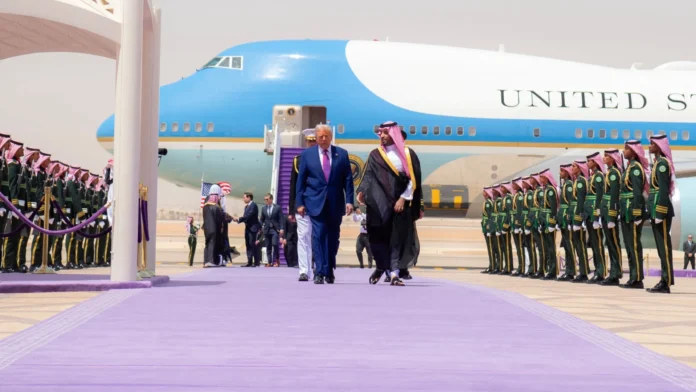 🇺🇸🇸🇦 High-Profile Welcome: Saudi Fighter Jets Escort Trump’s Plane Into Riyadh as He Kicks Off First Middle East Tour pic.twitter.com/oGxvogAeaj