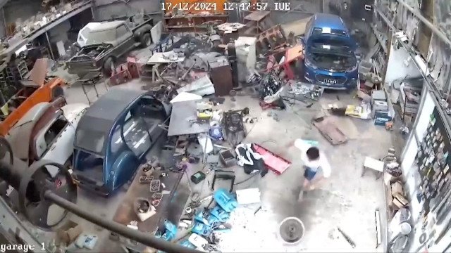 As imagens de câmeras de segurança em uma garagem em Porto Vila, na capital de Vanuatu, registraram o momento exato em que o terremoto de magnitude 7,3 atingiu o país.