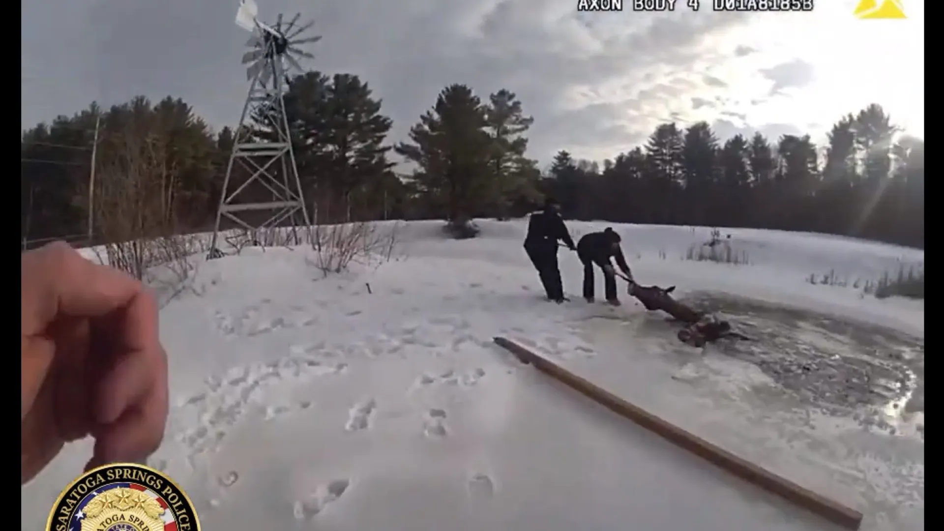 Ao perceber o acidente, a tutora de Sly, Ali Ernst, tentou manter a cabeça do cavalo acima do nível da água enquanto acionava a polícia e buscava ajuda. O agente Kyle Clinton, da Polícia de Saratoga Springs, foi o primeiro a chegar ao local e ajudou a estabilizar o animal. Outros dois policiais, vizinhos e familiares também participaram da operação de resgate.