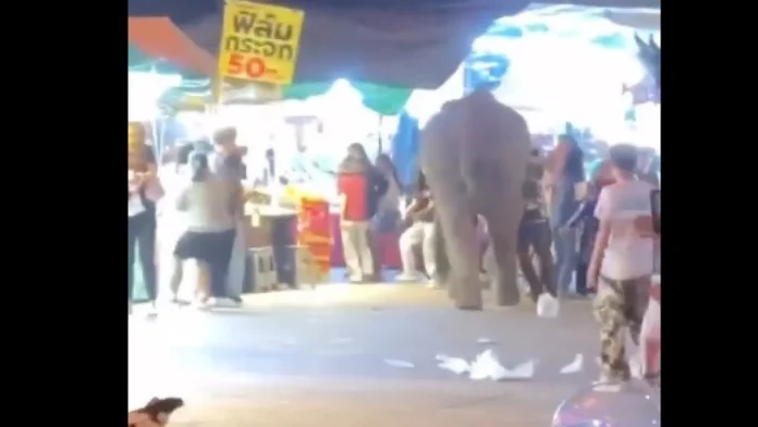 An elephant startled by fireworks ran into attendees at a Red Cross Fair in Nong Bua Lamphu province on Sunday, injuring five people. All the injured individuals have since been sent to Nong Bua Lamphu Hospital and discharged.