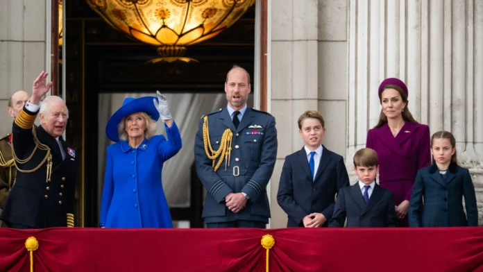 Os reis Charles III e Camilla fizeram acenos ao público na varanda do Palácio de Buckingham, junto de outros membros da realeza, como o príncipe William e Kate Middleton, que chegaram acompanhados pelos filhos, George, Charlotte e Louis.