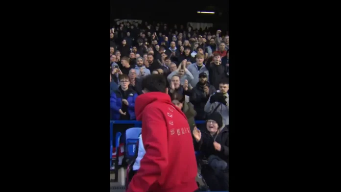 Bruno Fernandes fez questão de dar, no sábado (22), a sua camisa a uma torcedora do Manchester United, logo após o empate em casa do Everton (2-2), no qual marcou dois gols.