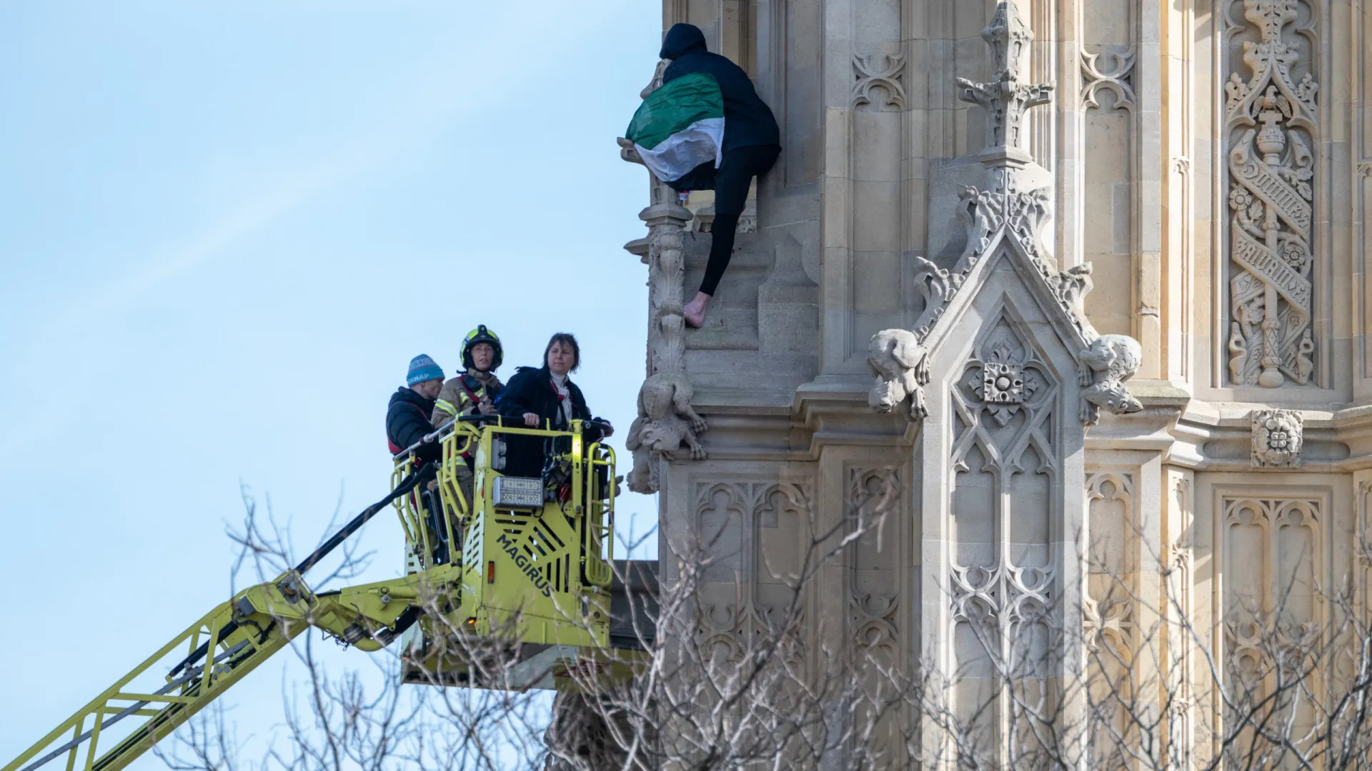 SÃO PAULO, SP (UOL/FOLHAPRESS) – Sem nenhum equipamento de segurança, um homem escalou a Elizabeth Tower de Londres, onde fica o famoso sino Big Ben. Ele protestava em prol da Palestina e precisou ser resgatado por equipes de salvamento neste sábado.