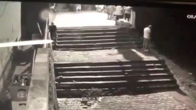 Um homem que fazia xixi na margem do Rio São Francisco foi derrubado por outro que tropeçou e levou um tombo numa escadaria na cidade de Propriá (SE), distante 100 km de Aracaju.