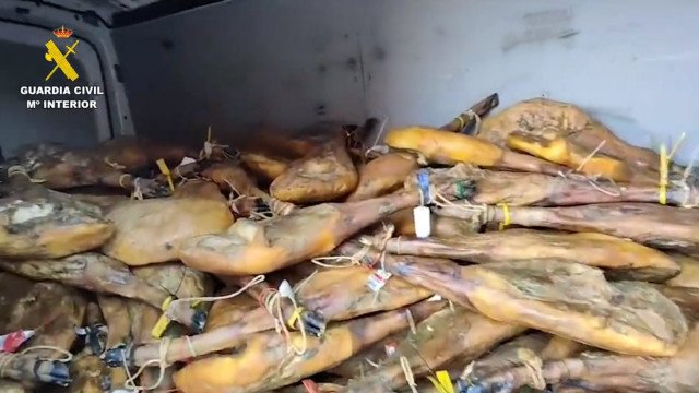 No total, foram roubados e, entretanto, recuperados 296 presuntos e paletas e 448 lombos ibéricos, cujo valor chega aos 200 mil euros (cerca de 1 milhão de reais).