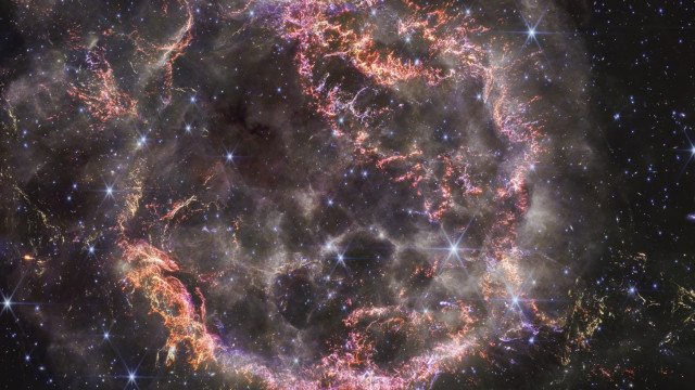“Com a NIRCam, podemos ver como a estrela moribunda se despedaçou completamente quando explodiu”, disse Danny Milisavljevic, um dos líderes da equipe de pesquisa, da Universidade de Purdue. “Os filamentos que vemos são parecidos com pequenos estilhaços de vidro.”