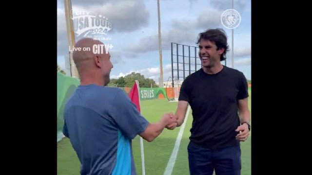 O Manchester City divulgou um vídeo nesta terça-feira mostrando o momento em que Pep Guardiola recebeu Kaká com muito entusiasmo durante um treino na turnê pelos Estados Unidos.