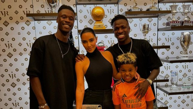 O futebolista pousou ao lado da celebridade e do menino, e numa das fotografias juntou-se ainda o colega de equipe de Vini Jr. do Real Madrid, Eduardo Camavinga.
