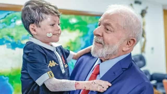 O presidente Lula se encontrou com o garoto Guilherme Gandra Moura, de nove anos, na terça-feira, em Brasília, compartilhando o momento em suas redes sociais.