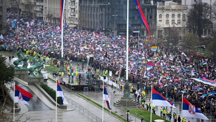 🇷🇸 The crowds in Belgrade today. Some have said this is the largest protest in the history of Serbia. pic.twitter.com/CsjRUtjrSm