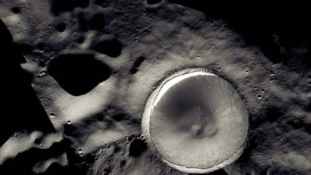 A imagem destaca a cratera Shackleton, localizada no polo sul da Lua, uma região onde os pesquisadores acreditam que possa haver água gelada escondida nas crateras permanentemente sombreadas.