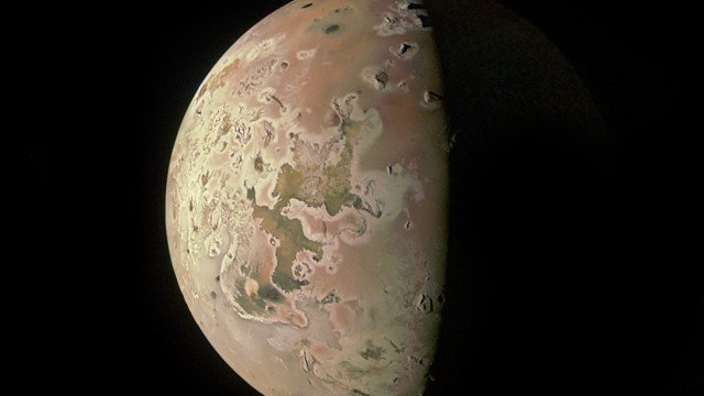 As imagens mostram uma série de vulcões ativos em Io, alguns dos quais estão lançando lava quente para a atmosfera. A atividade vulcânica em Io é causada pela força gravitacional de Júpiter e de outras luas, como Europa e Ganímedes.