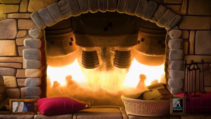 O vídeo, lançado pela NASA, simula uma lareira, mas substitui as chamas por imagens impressionantes dos motores RS-25 do foguete SLS (Space Launch System) em ação. “Exatamente o que você precisa para a época festiva”, brinca a NASA. “O calor dos quatro motores RS-25 e dos propulsores laterais – o suficiente para levá-lo à Lua ou sobreviver às festas com os sogros!”, diz o comentário que acompanha o vídeo.