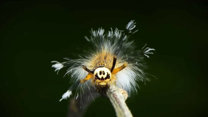 Lagarta coletora de ossos tem apenas cerca de 5 milímetros de comprimento.