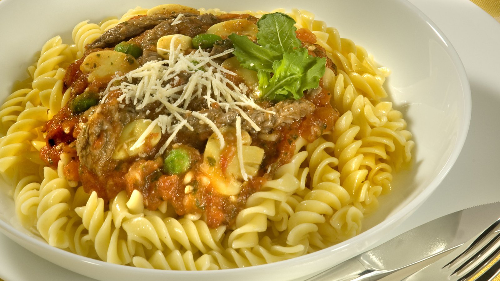 Para uma rápida refeição, prepare Parafuso ao molho de carne com Rúcula