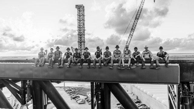 A SpaceX decidiu recriar uma das fotos mais icônicas da história, com imagens compartilhadas na rede social X que mostram os engenheiros da empresa sentados na estrutura projetada para capturar o propulsor Super Heavy.