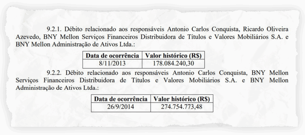 A condenação do ex-diretor-presidente do Postalis Antônio Carlos Conquista, do ex-diretor financeiro Ricardo Oliveira Azevedo e da BNY Mellon – responsável pela administração fiduciária e pela gestão da carteira do FIC Serengeti – ao ressarcimento de R$ 452,8 milhões ocorreu de forma solidária.