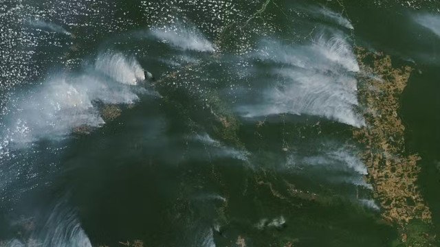 A captura da fumaça nas imagens via DSCVOR, um satélite tão distante da Terra, significa que há grande volume. O registro do satélite mostra um grande corredor cinza, com maior volume na região da Floresta Amazônica e do Pantanal, mas que desce em direção ao Sul do País.