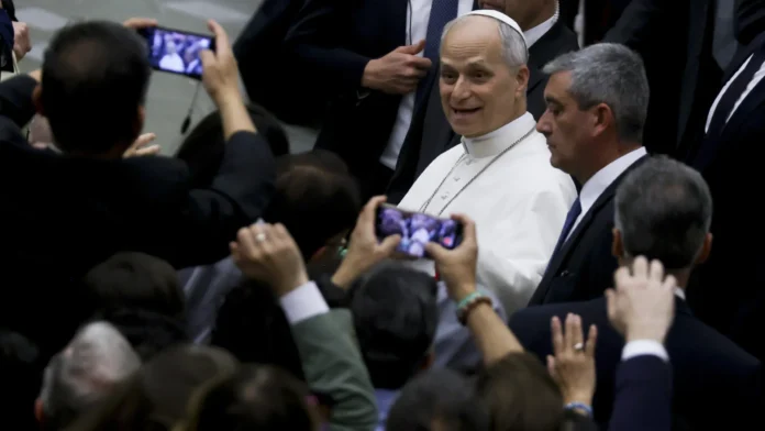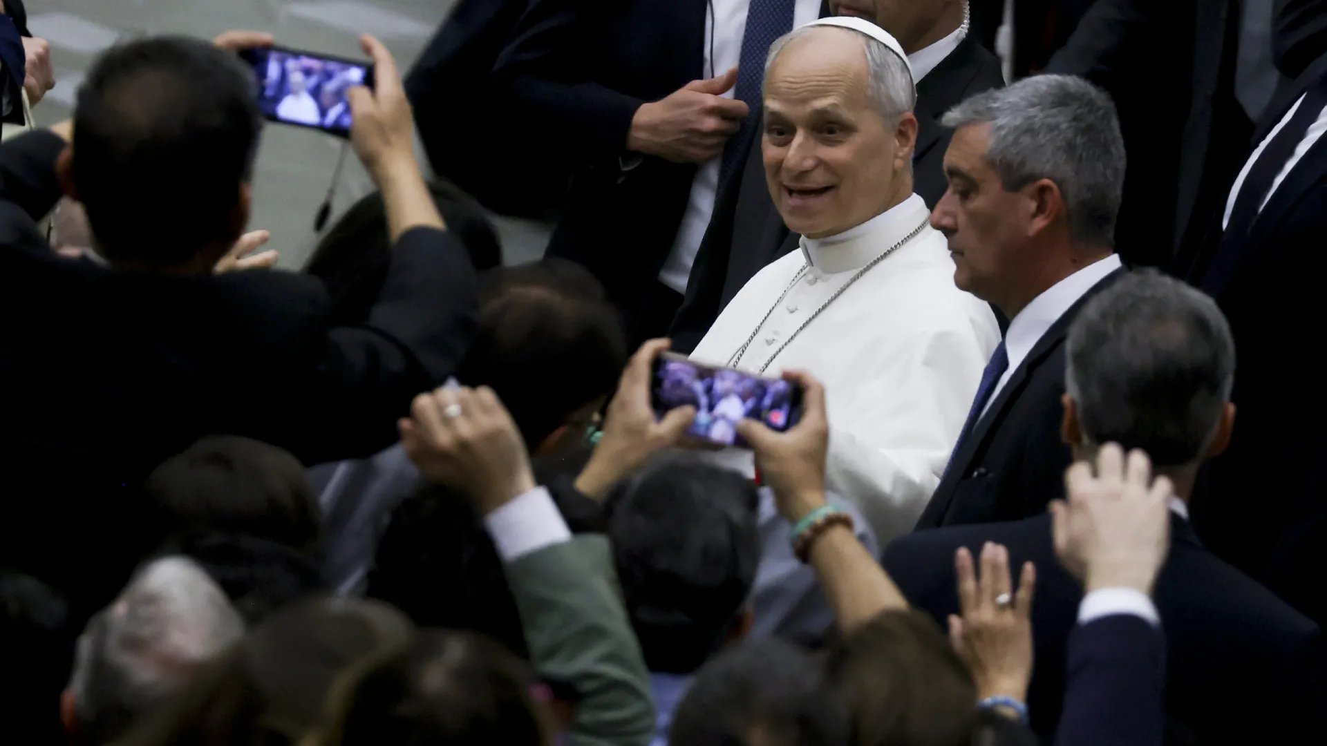 Ao final da audiência, a saída de Leão 14 da Sala Paulo 6º foi uma cena caótica.