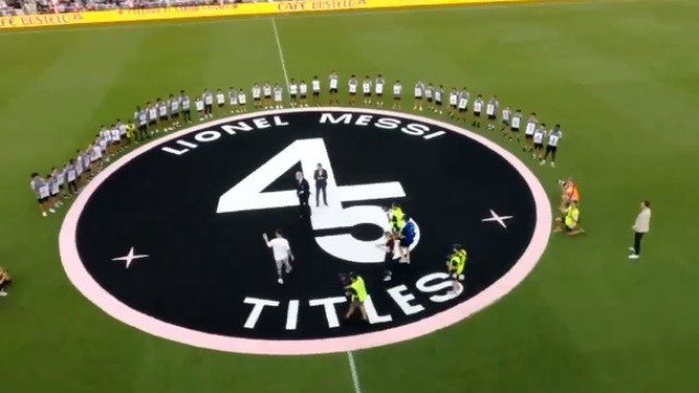 Lionel Messi voltou à Flórida neste domingo e foi homenageado pelo Inter Miami. Durante o intervalo da partida contra o Chicago Fire, o clube norte-americano fez uma homenagem ao seu capitão, que agora é o jogador mais condecorado da história do futebol, com 45 títulos.